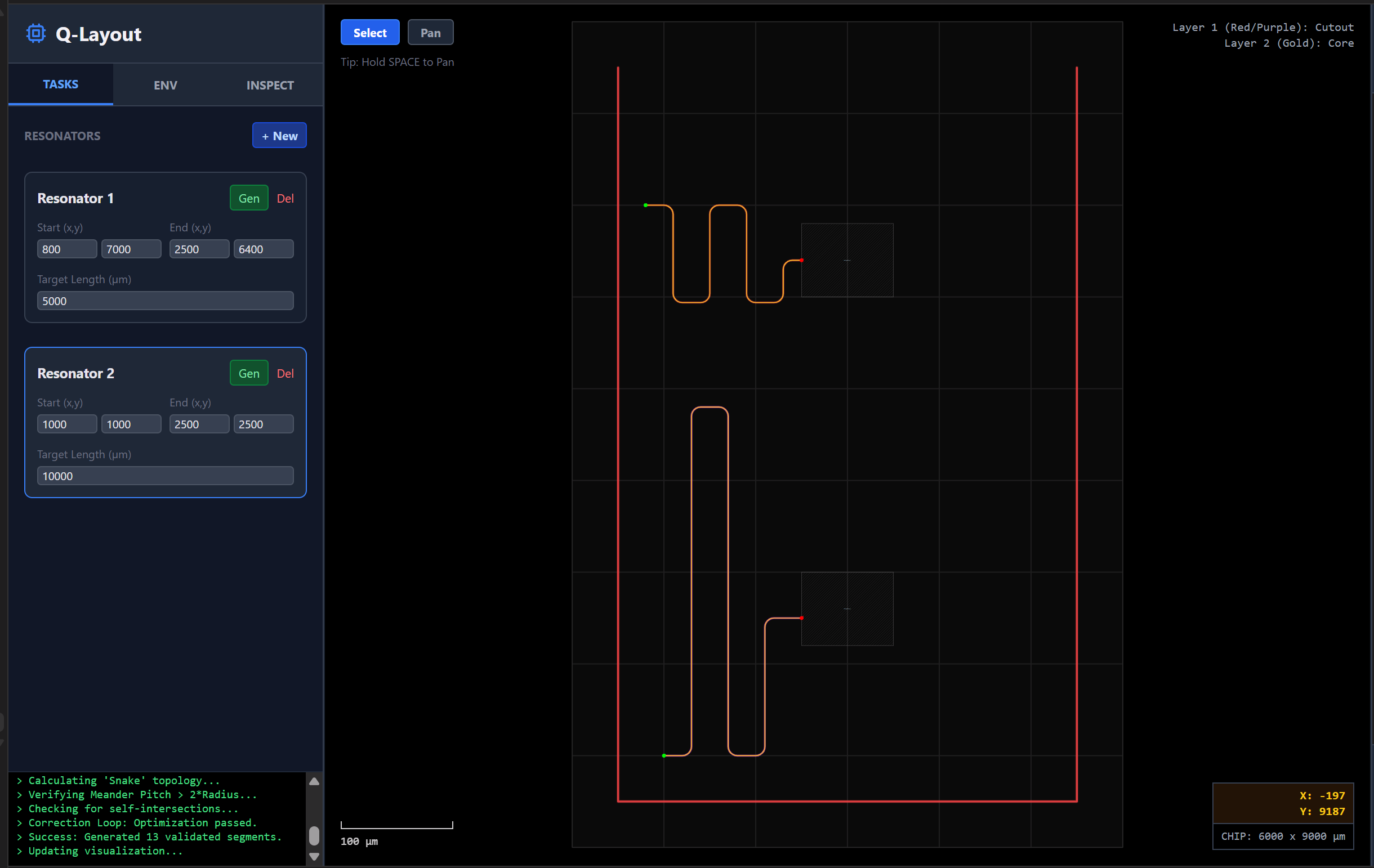 Smart Microwave Chip Router: This one's more niche but very cool for our field. Manually routing transmission lines on microwave chips — CPW resonators, qubit drive lines — takes days per design. CWK built an EDA-like tool that routes based on constraints (frequency, device location, chip size) and outputs Python scripts for GDSFactory. It renders in real-time using an SVG engine with collision detection and coordinate transformations.
