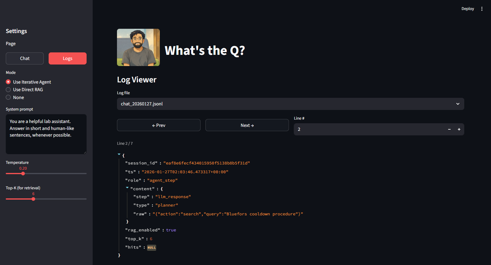 The system has two modes: basic retrieval (single-round search) and an agent mode that iteratively reasons and performs multiple search rounds for complex queries. It runs on our lab ethernet, with a Streamlit web UI and ChromaDB for storage.