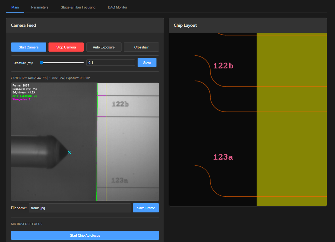 If you work in nanophotonics, you know the pain of coupling light from a fiber into an on-chip waveguide. Step 1 is coarse alignment — a human squinting at a microscope camera, nudging translation stages. Step 2 is gradient ascent on the detected power. Step 1 is tedious. Step 2 gets stuck on local maxima (slab modes, etc.).